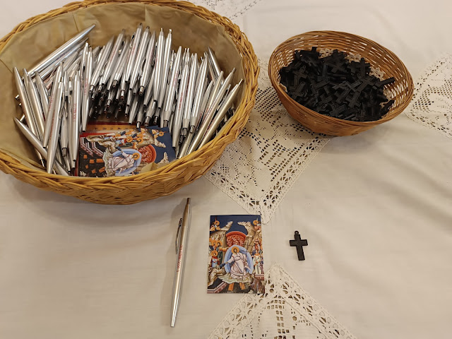 Τέλος, ο Σεβασμιώτατος μοίρασε προσωπικά σε κάθε υποψήφιο ένα στυλό – ως εργαλείο για τον αγώνα των εξετάσεων, μία εικόνα – για προστασία και ενίσχυση, κι ένα μικρό σταυρουδάκι – ως πνευματικό όπλο στη ζωή τους.